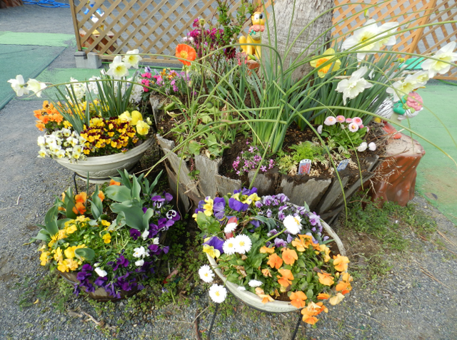 花壇の花は満開です。アネモネ、ラナンキュラス、水仙、パンジー、ビオラなどは、ずいぶん前から咲いていますが、チューリップも咲き始めました。入園式にはふさわしいかもしれません。春休みといってもホームクラス(預かり保育)に参加している子どもたちで園内は賑やかです。能書きはこれくらいで、写真をごらん下さい。